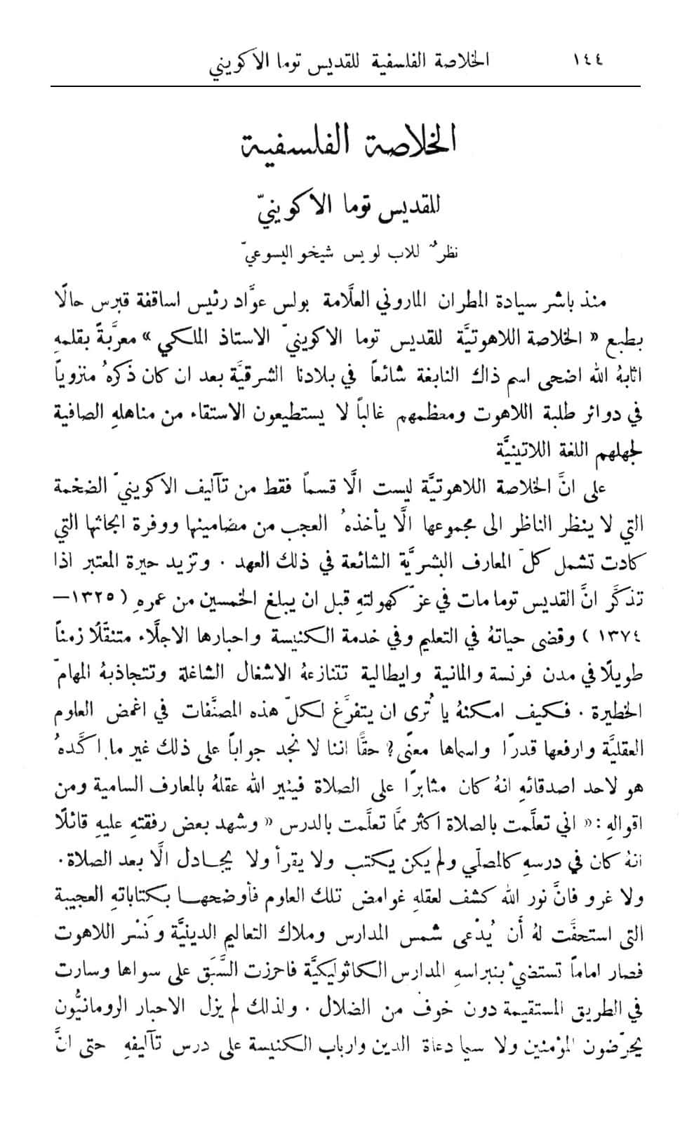 الخلاصة الفلسفيَّة للقدِّيس توما الأكويني للأب لويس شيخو اليسوعيّ
